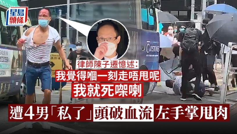 事務律師陳子遷前年5月反《國安法》示威期間,在銅鑼灣街頭因不滿示威者堵路及破壞,遭示威者圍毆「私了」,涉案32歲男貨車司機否認暴動及蓄意傷人罪,今日於區域法院續審。陳子遷憶述大罵堵路黑衣人「你哋呢班黑暴唔好走,等差人來拉晒你哋」後遭一直追打,頭破血流,自言「我覺得嗰一刻走唔甩呢,我就死㗎喇」,惟未能憶起被告所涉襲擊過程,觀看現場片段後方依稀記起。