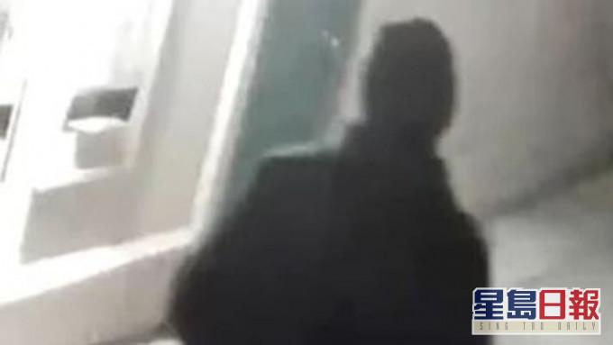警方公布疑是疑兇身穿黑色衫及戴上黑色帽的相片。