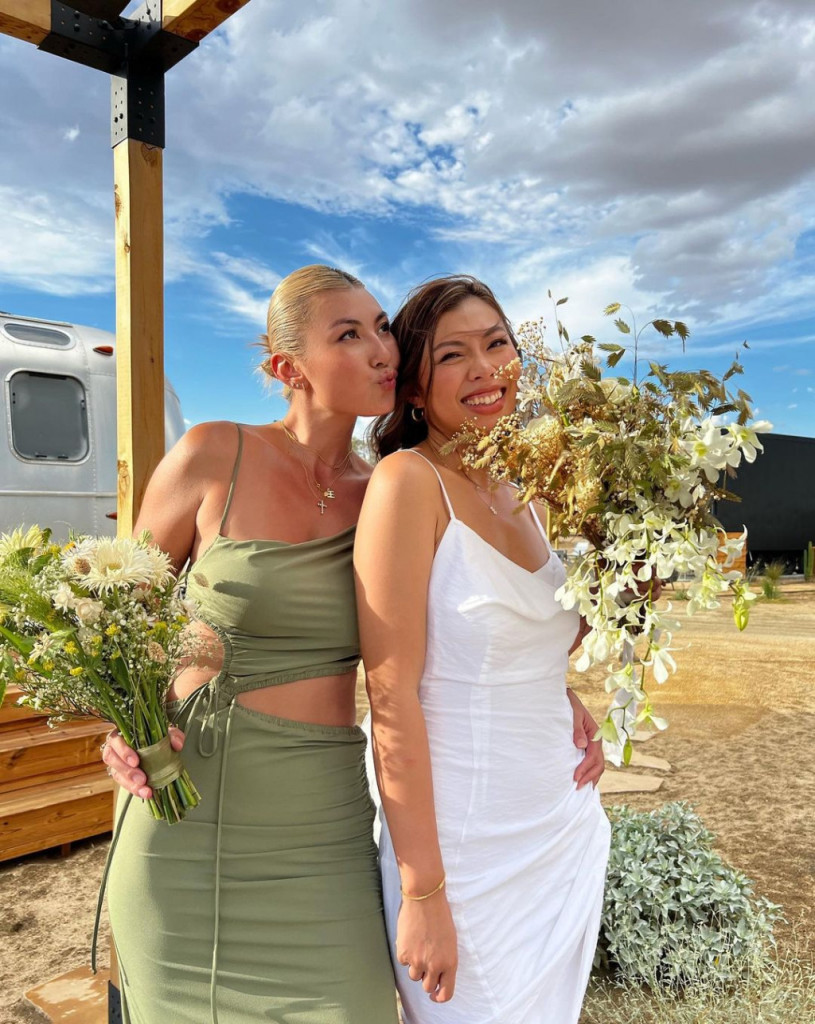 王麗嘉前排狂Po家姐王曼喜婚禮嘅相。