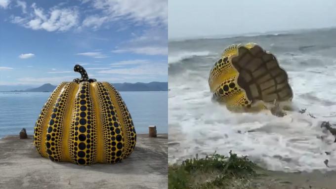 以現代藝術之島為外界周知的瀨戶內海香川縣直島,過去長期展示一座由草間彌生創作的「南瓜」。這座大南瓜以黃色為底色,上面有黑色圓點;高度約2公尺、寬度約2.5公尺,材質為纖維強化塑膠,從1994年起設置在凸出海面的碼頭上公開展覽,作為直島象徵裝置藝術為島民及觀光客所熟知。未料南瓜不敵2021年8月9日颱風「盧碧」重創落海,並撞擊碼頭受損。