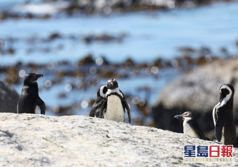 一群企鵝站在企鵝棲息地的一塊岩石上。路透社圖片