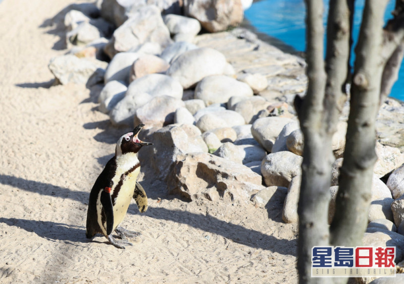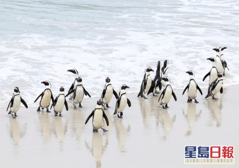 一群瀕臨滅絕的非洲企鵝在博爾德斯海灘上行走。路透社圖片