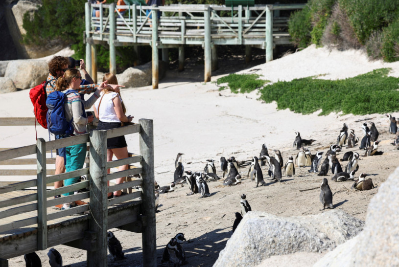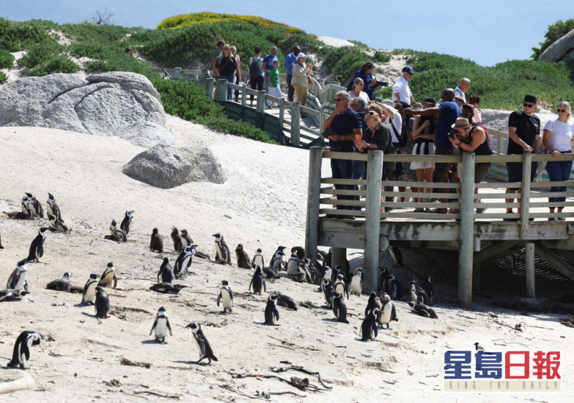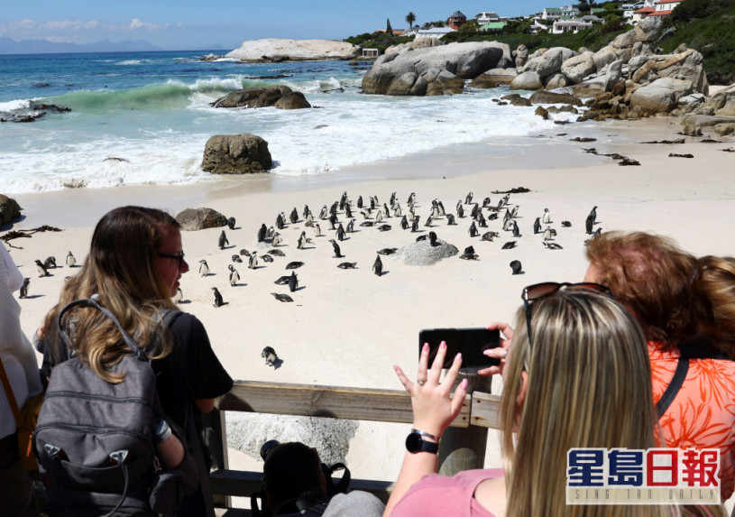 遊客站在開普敦著名的企鵝棲息地的觀景點,這是當地受歡迎的旅遊景點。路透社圖片