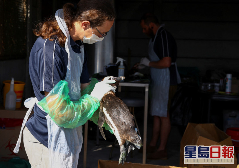 南部非洲海岸鳥類保護基金會(SANCCOB)臨床獸醫羅拔斯(David Roberts)表示,28隻瀕臨絕種的企鵝死亡。路透社圖片