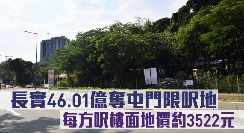 上周截收5標書的屯門大欖流標限呎地,地政總署公布招標結果,由長實以46.01億、力壓4財團勇奪,每方呎樓面地價約3522元,低於市場估值下限價。