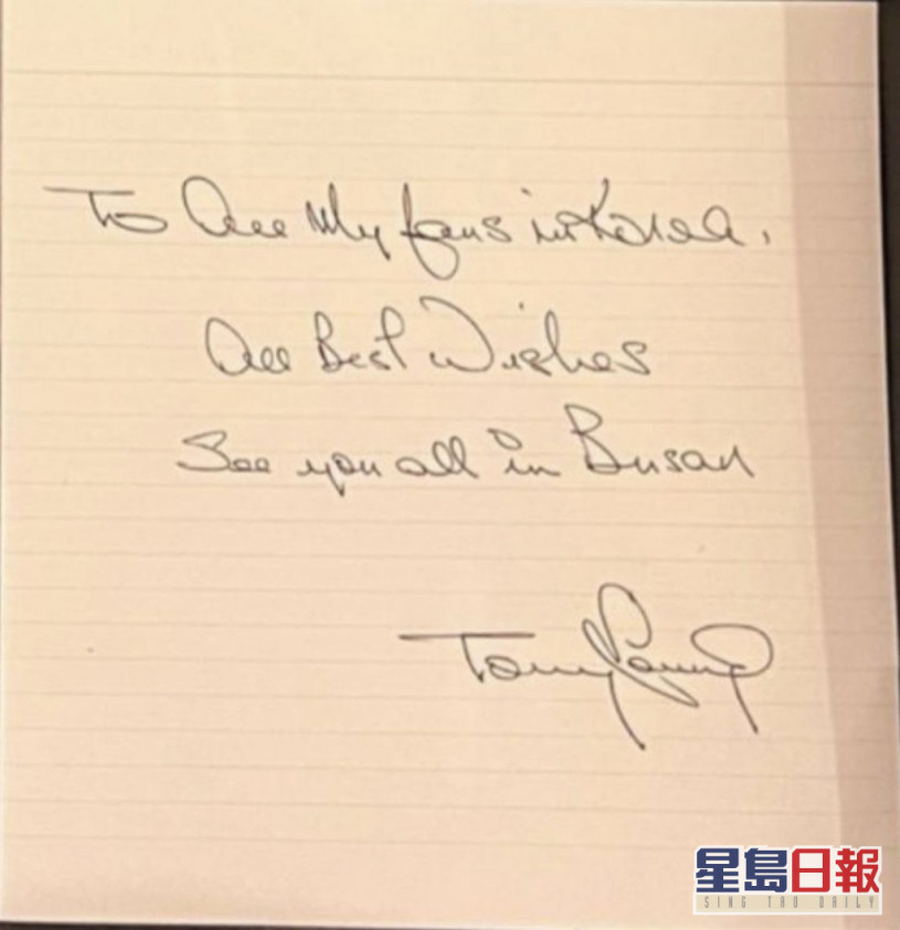 同韓國Fans打招呼,話喺釜山見嘞。