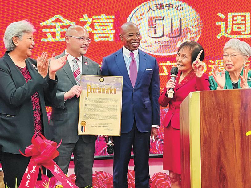 華策會人瑞中心7日晚在華埠喜運來大酒家舉行50周年金禧慶典,數百中外賓客出席,市長亞當斯親臨現場表揚,華人長者對市長出席關懷份外高興。
