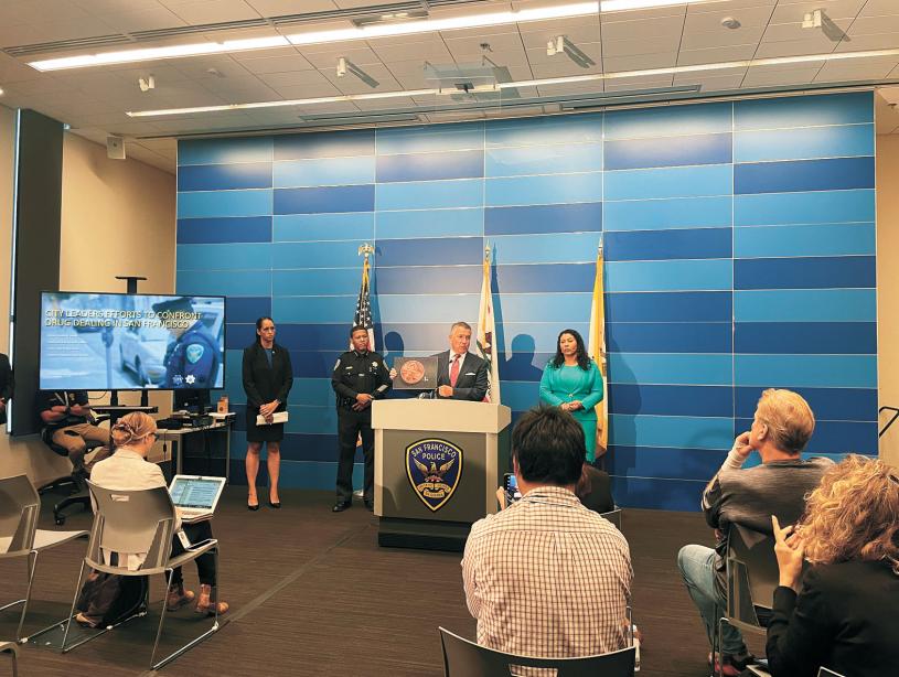 Chief Scott described the San Francisco Police Department’s (SFPD) role and responsibility in enforcing the law and disrupting open-air drug dealing and drug use. Enforcement operations are driven by a multitude of factors, including community input, data analysis, calls for service, uniformed presence, observed street conditions, and plainclothes operations. In the downtown and Tenderloin neighborhood, which is the most heavily impacted by the drug crisis, SFPD has supplemented uniformed patrol officers with members from its Narcotics Unit, Traffic Company, and civilian ambassadors.