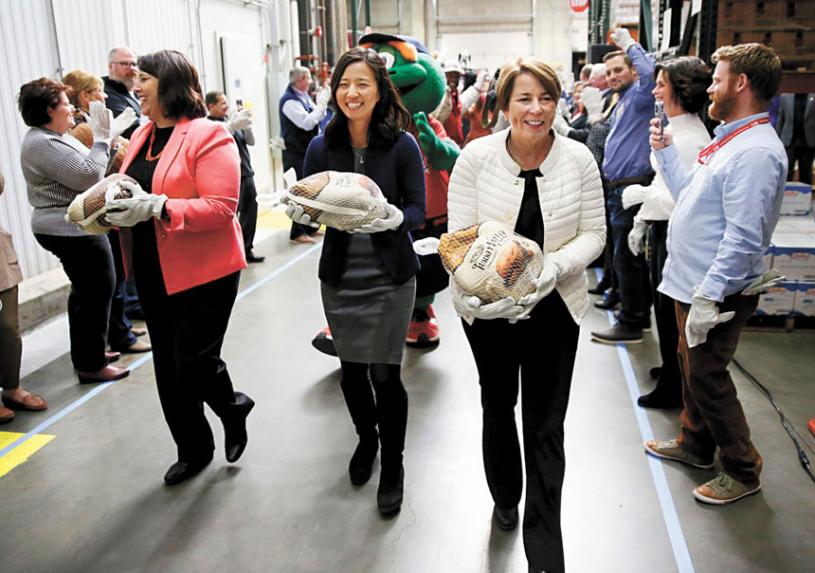 據《波士頓環球報》報道,距離選舉日不到48小時,波士頓市長和馬薩諸塞州未來的州長似乎已經採取一致行動。本月早些時候,吳弭(Michelle Wu)和莫拉·希利(Maura Healey)手持冷凍火雞並肩走過大波士頓食品銀行(Greater Boston Food Bank)的倉庫,志願者排起長隊歡呼。如果一年一度的活動的目的是幫助促進糧食安全,那麽它也傳遞了另一個信息:希利和吳弭兩位民主黨人一起送貨。