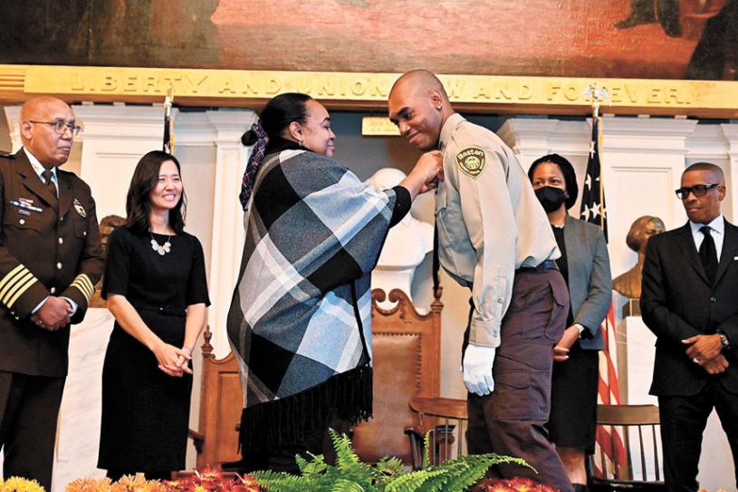 2022年11月21日,波士頓市長吳弭(Michelle Wu)與波士頓公共衛生委員會執行主任比索拉·奧吉庫圖(Bisola Ojikutu)博士和緊急醫療服務(EMS)負責人詹姆斯·胡利(James Hooley)一起慶祝19名緊急醫療技術員(EMT)新兵和最近晉升的七名中尉、五名護理人員、四名副警司和兩名警司。這18次晉升是在過去四個月內進行的,代表了與波士頓EMS合作約300年的綜合經驗。EMT將分配給911救護車和派遣業務,以加強波士頓市的緊急醫療服務。
