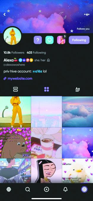 對於物色新家的前推特用戶來說,Hive某些方面也許讓他們安心,因為該程式只有簡單且熟悉的介面,例如多個分頁瀏覽主時間軸或動態、「發現」(Discover)選項探索平台、一個進入自己檔案的分頁和另一個查詢通知等。在中間部份,就有按鈕建立新帖文。