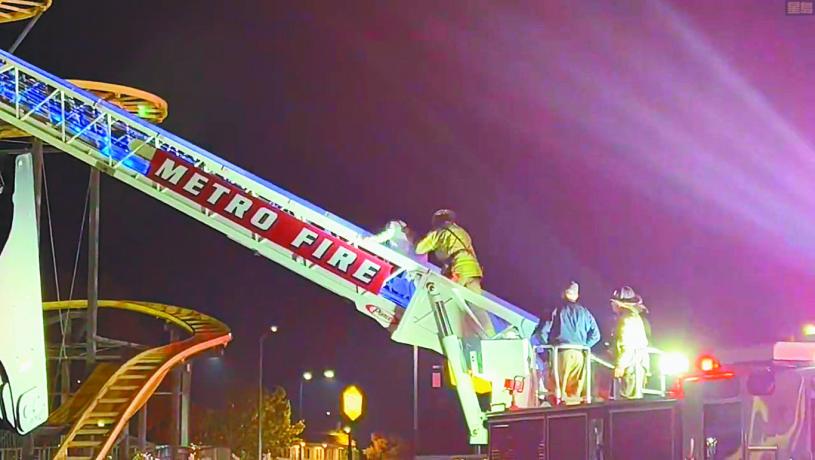 沙加緬度縣社區北高地(North Highlands)一座遊樂場發生九宵驚魂意外,一列過山車疑因故障卡在高空,乘客需由消防員救下來,幸無人受傷。