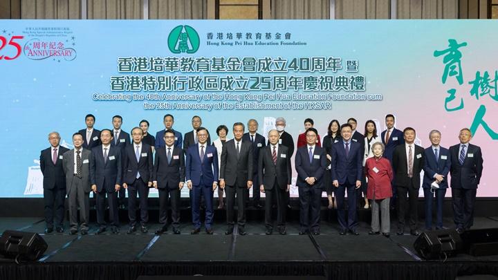 香港培華教育基金會今天(24日)舉行成立40周年暨特區成立25周年慶祝典禮,並由全國政協副主席梁振英、律政司副司長張國鈞、創新科技及工業局局長孫東及香港中聯辦代表擔任主禮嘉賓。典禮上,梁振英及孫東分別作專題演講。