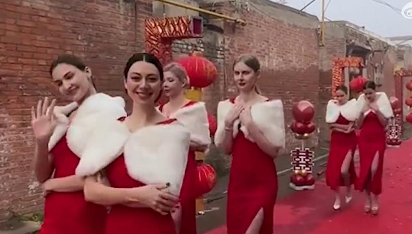 婚禮的烏克蘭伴娘團,驚艷出場的影片,引發網民關注。畫面中,8名烏克蘭美女全部穿著紅色開衩長裙,又高又白,十分養眼。