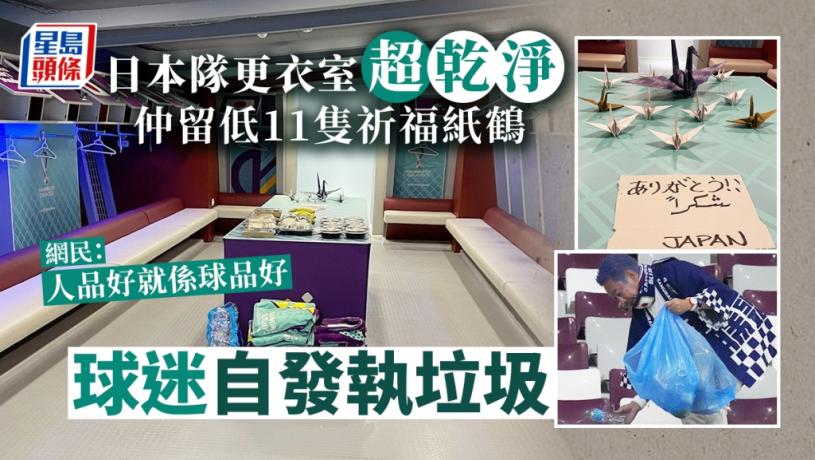 又一印證「波係圓嘅」,世界再出現驚人賽果,日本逆轉以2:1擊敗德國,球員開心慶祝之後,不忘堅守優良傳統,清潔完更衣室才離開,還留下紙鶴並寫上日文及阿拉伯文「謝謝」字句,獲全球大量網民讚賞,被指「贏波又贏品」。