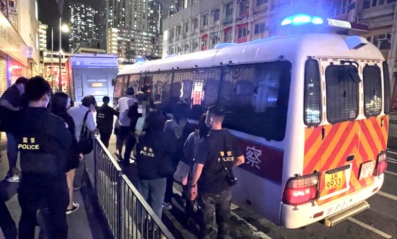 警方在行動中檢獲約80罐啤酒及一批音響設備。所有被捕男女現正被扣留調查。
