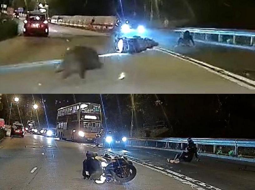 意外發生後,網上流傳一段車cam短片,直擊意外經過。片中顯示電單車行駛期間,一頭野豬突然從右邊路旁衝出,直撼電單車,鐵騎士當場被撞至翻車,而野豬撞車後一度倒地,但迅即爬出,再狂奔至對面綫馬路,然後逃去無蹤。受傷鐵騎士則坐於路面待援,從後駛至巴士及多輛汽車立即將車停下,並有多名熱心人士協助受傷電單車司機。