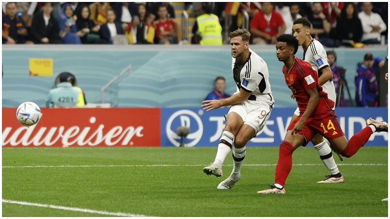 週一凌晨上演世界盃分組賽E組賽事西班牙對德國。上半場西班牙為較積極一隊,開賽六分鐘,西班牙翼鋒丹尼爾奧莫左邊禁區勁射,德國門將紐亞撲到再中柱幸保不失。戰至下半場六十二分鐘,西班牙左閘佐迪艾巴地波傳中,後備上陣的中鋒艾華路莫拉達小禁區角腳面彈入,西班牙領先1:0。及後德國換人加強攻力,終在完場前七分鐘獲得回報,穆斯亞拿左路傳中,第三次為德國後備上陣的中鋒富克洛遠柱勁射破網,為德國追成1:1平手,及後雙方再無紀錄,打和各得一分。賽後西班牙兩戰四分仍未穩奪出綫權,而德國則兩戰一分,下場即使擊敗哥斯達黎加,仍需看西班牙最後一場分組賽對日本賽果才知能否出綫。