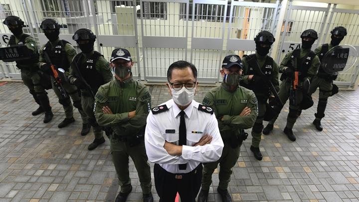 採訪當天,緊急應變隊即場演示如何控制中心內製造滋擾的被羈留人士,可見5名隊員配備護目鏡、防刺背心、護膝、護肘及胡椒球發射器在囚室外等待,當指令發出後,有隊員在門前投擲催淚粉煙,繼而打開囚室門戶把守,其餘4名隊員入內,看守及控制被羈留人士。