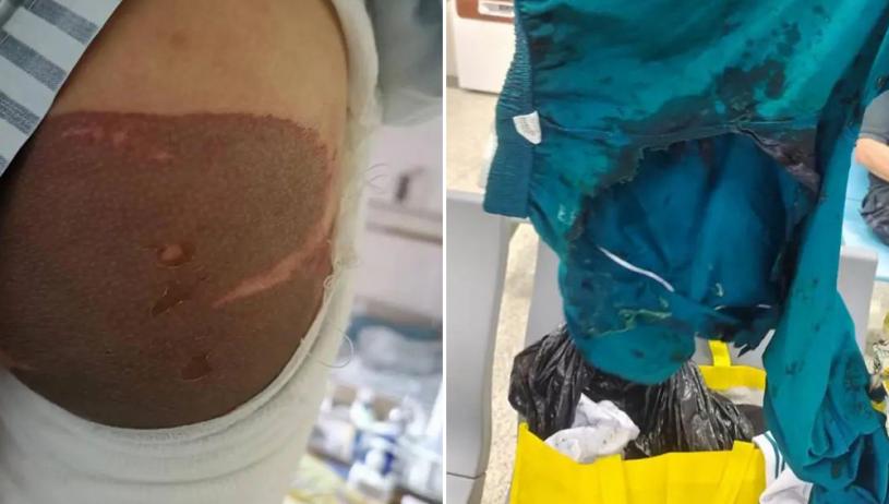 根據網傳聊天記錄顯示,11月25日,有兒童在廣州地鐵一號線內滑倒,跌坐於一灘「不明液體」上,隨後該名兒童所穿衣物遭液體腐蝕,皮膚也出現大面積灼傷及紅腫。