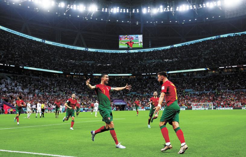 H組紙面實力最強的兩支球隊28日展開交鋒,憑藉布魯諾.費爾南德斯(B費)的梅開二度,葡萄牙2:0擊敗烏拉圭,報了四年前的一箭之仇,以兩連勝的戰績,提前一輪突圍晉級16強。