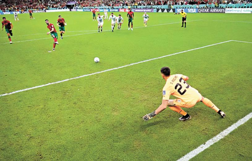 補時階段,烏拉圭防守球員在禁區線內倒地用手阻擋了B費的帶球線路,經視頻助理裁判(VAR)確認,裁判判罰了十二碼。第93分鐘,B費將球穩穩罰進。終場前,B費禁區前低射擊中立柱,險些上演帽子戲法。