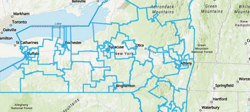 州參眾兩院均由民主黨掌控,由州立法院特別工作組起草的地圖將民主黨利益擴展到最大,特別是國會議員選區地圖的劃法使民主黨可能在下次選舉中奪回三個目前由共和黨議員代表的選區。共和黨以違憲為由提起訴訟,意在推翻重劃地圖。斯特本郡( Steuben County) 法官麥卡利斯特(Patrick McAllister)宣布地圖草案無效後,任命了一名特別專家來起草新的國會和州參議院選區地圖。而眾議院的地圖也在另一場訴訟中被駁回。法院最終裁定,今年的選舉將使用這份地圖,但需要在2024年的選舉前進行修改。今年9月,曼哈頓最高法院裁定獨立選區重劃委員會須在2023年4月之前提交新的地圖。