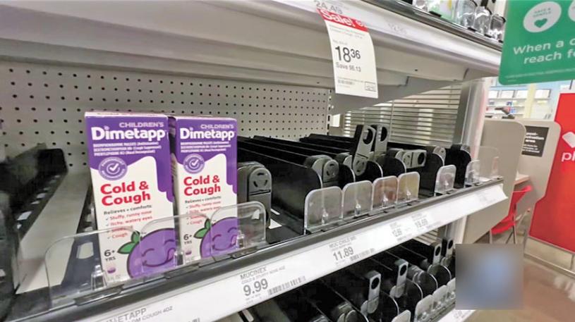 電視台報道,在連鎖藥局標的(Target)和CVS及其他主要零售商店內,許多感冒和流感藥物貨架都是空的。
