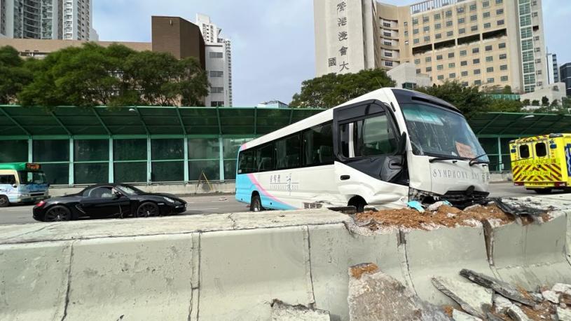 小巴撞石壆,石壆遭撞毀。劉漢權攝