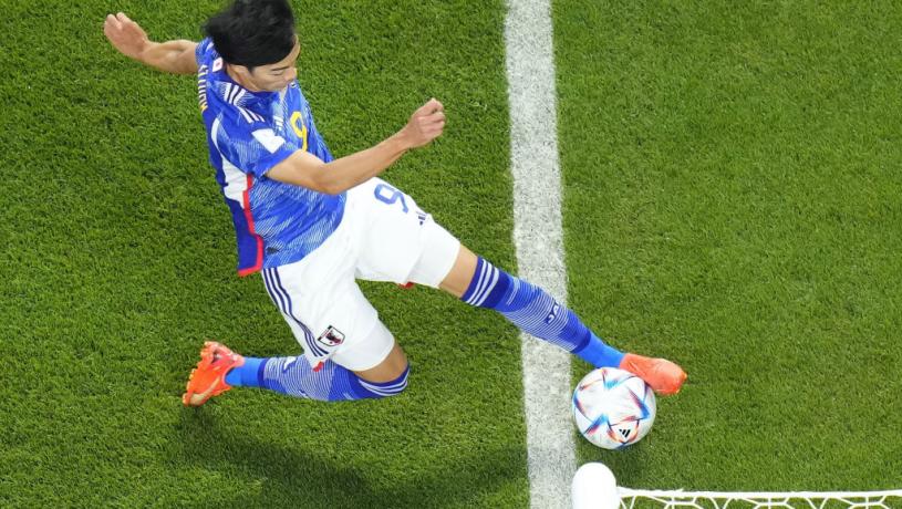 E組最後一輪,日本鬥西班牙上半場先輸一球,但下半場三分鐘內連入二球。反勝一球更成熱話,因三笘薰於皮球差1.88毫米就完全出界的情況下,撈回皮球予田中碧射入,最後日本絕地反勝以首名出綫。Reuters