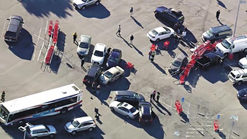 從社交網站推特的短片可見,事發後現場可謂一片狼藉,多輛汽車撞成一團,多輛連鎖零售店Target的購物車被壓在涉事巴士的車頭下。