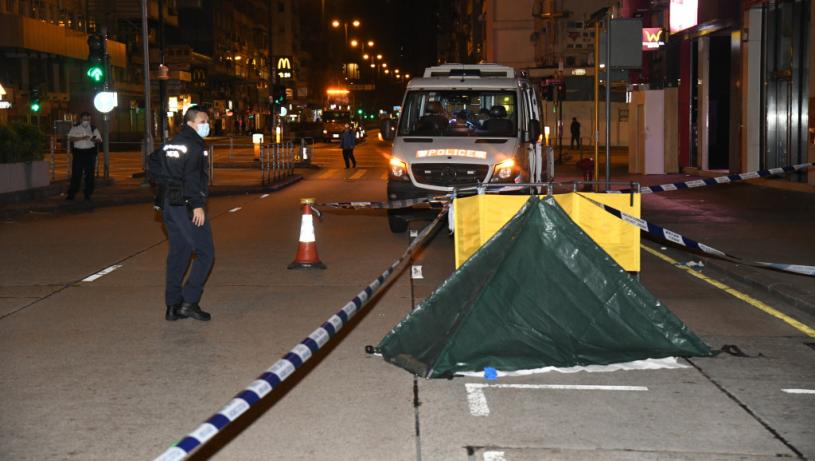 女子墮樓倒卧彌敦道往旺角方向慢線。李家傑攝