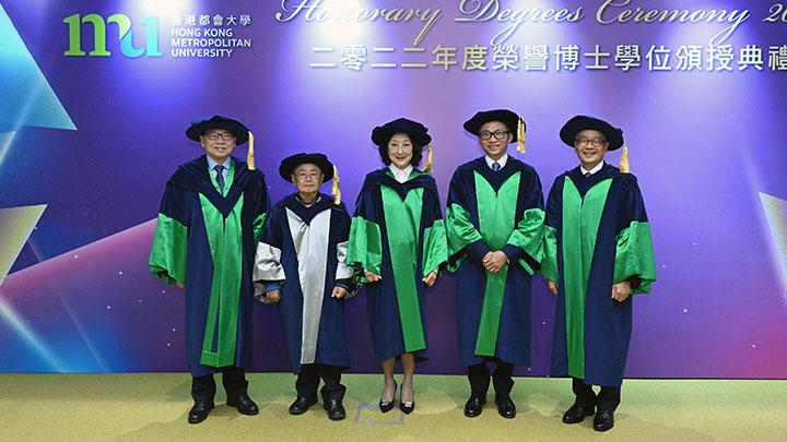 典禮上,都大署理校長關清平讚揚五位榮譽博士對高等教育、各自的專業領域以至整個社會的重大貢獻。