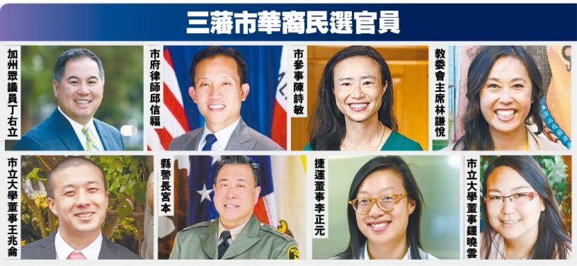 在今年11月的選舉結束之後,三藩市民選官員職位中將剩8位華裔/亞裔,占比 21%。包括加州眾議員丁右立(Phil Ting)、市府律師邱信福(David Chiu)、縣警局局長保羅宮本(Paul Miyamoto)、市參事陳詩敏(Connie Chan)、三藩市教育委員會主席林謙悅(Jenny Lam)、市立大學校董王兆倫(Alan Wong)、鐘曉雲(Vick Chung)以及捷運董事李正元(Janice Li) 。而影響社區福祉最深遠的立法者將僅剩兩位,分別是丁右立與陳詩敏。