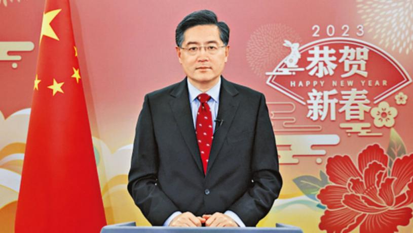 秦剛新年剛剛以外長身分完成對非洲多國的訪問返國。他昨天向駐華使節發表新春賀辭,指剛剛過去的2022年,對中國和世界各國都是極不尋常的一年。世紀疫情的陰霾未散,地緣衝突的硝煙又起,全球多年發展成果遭到吞噬,糧食、能源安全受到衝擊。個別國家趁機大搞霸權霸道霸凌、煽動意識形態對立和陣營對抗,把世界推向分裂衝突的邊緣。他說,2023年,中國堅定奉行獨立自主的和平外交政策,始終不渝走和平發展道路,中國的發展永遠是世界和平力量的增長。推動國際社會營造團結大家庭、唱響合作主旋律,拋棄冷戰舊思維,反對排他「小圈子」。