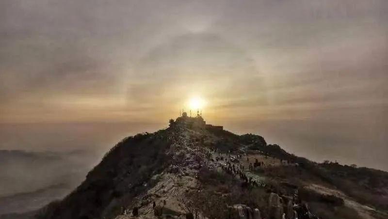 1月23日清晨,山東泰山之巔再現冰暈奇觀。