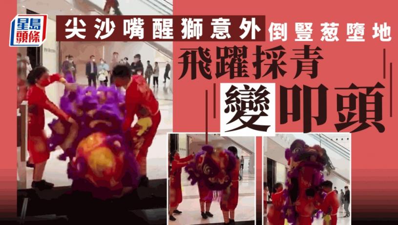 網絡近日熱傳影片,尖沙嘴西九龍一個大型商場開年醒獅活動發生意外,舞獅頭人員躍起一刻竟倒豎葱墮地,採青變撼地叩頭,影片惹來網民熱議。