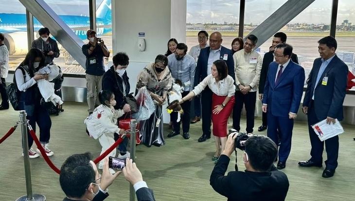 24日下午,搭載超過200名旅客的廈門航空MF819航班從廈門飛抵馬尼拉國際機場,菲律賓旅游部在機場舉辦了盛大的歡迎儀式。旅游部長弗拉斯科和中國駐菲律賓大使黃溪連等親自到機場迎接。