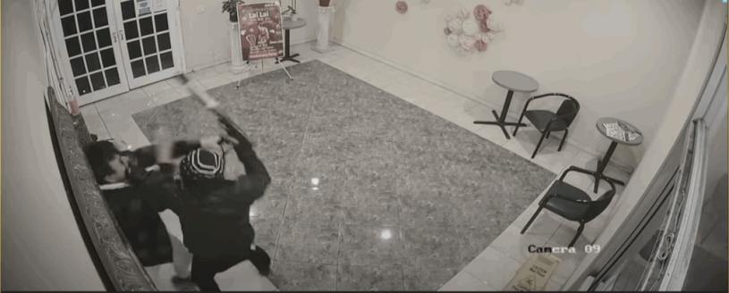 從來來舞廳的監視器畫面看到,布蘭登和槍手扭打纏鬥了大約40秒,他一直死抓着槍手的長槍不放,互相鬥力拉扯,槍手隨手拿起枱上的硬物砸他的臉、後腦杓、背部和手部,「我嘗試把槍口從我和這間舞廳移開,朝向地面,以防他突然開槍。」