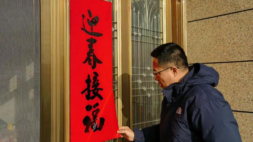 照片中的趙立堅身穿一件藍色大衣,在門口貼上「迎春接福」的揮春。網民關注到貼文發布於江蘇,因趙立堅是河北人,猜測可能是陪湯天如回娘家。