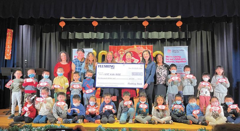 皇后區法拉盛P.S.22Q小學於26日邀請到市議員黃敏儀、法拉盛銀行和NYC Kids RISE共同宣佈由法拉盛銀行捐贈的6千元通過「大學儲蓄計劃」,為231校內幼兒園和一年級學生提供額外獎學金。由P.S.22Q小學主辦的紐約市獎學金月活動將現場幫助家長和監護人激活和查看他們孩子的紐約市獎學金賬戶,這筆資金將成為助力孩子大學與職業生涯的第一步。