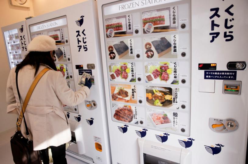 日本商業捕鯨公司「共同船舶」力排眾議,想出新招增加生意ー用自動販賣機販售鯨魚肉。該公司近日先後在東京和橫濱開店,目標是5年內增至100個銷售點。環保團體擔心這是邁向擴大捕鯨的一步。