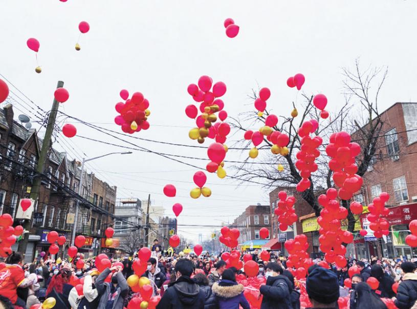 當天下午1時許,主辦方為民眾燃放了鞭炮,並放飛了數百隻氣球。在舞獅隊敲鑼打鼓地帶領下,民眾沿8大道從50街一路遊行至61街。整場活動在歡快的氣氛中結束。本報記者張之銘紐約報道