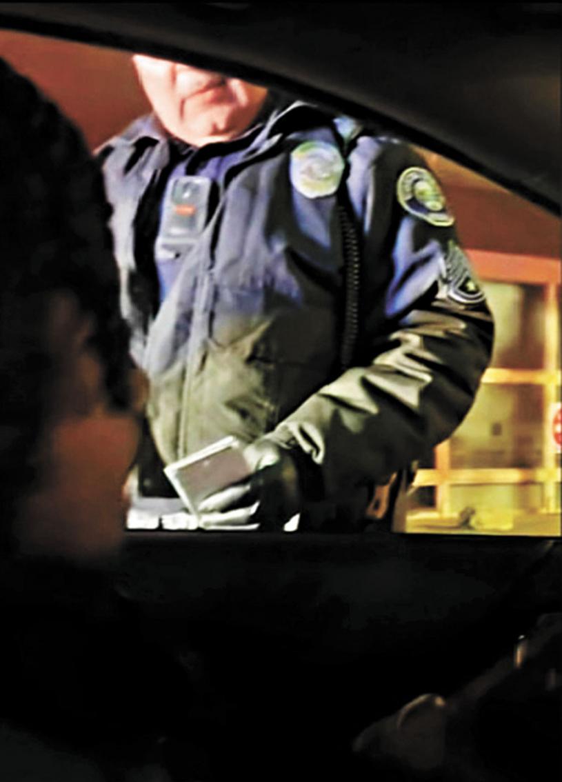 警察接著仍然不肯鬆口的說「當有人沒有身份證時,執法部門有權搜查車輛」。