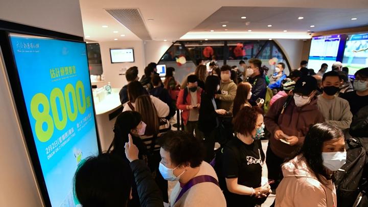 下午5時,十大幸運投注站之首的中環士丹利街投注站外,排隊區一直持續人來人往,雖未見高峰期大排長龍,但客人絡繹不絕,接近6時,有警察在附近巡視,秩序大致良好。有市民經過「研究」,專程前來購買,亦有市民從上水搭地鐵來投注,希望實現新年「恭喜發財」夢。