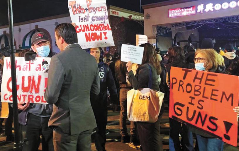 槍擊案發生後,禁槍的呼聲再次響起。很多人認為,這麼多槍擊案的罪魁禍首,就是槍支。在哀悼蒙特利公園市槍擊案的現場,有人打出了禁槍的標語。