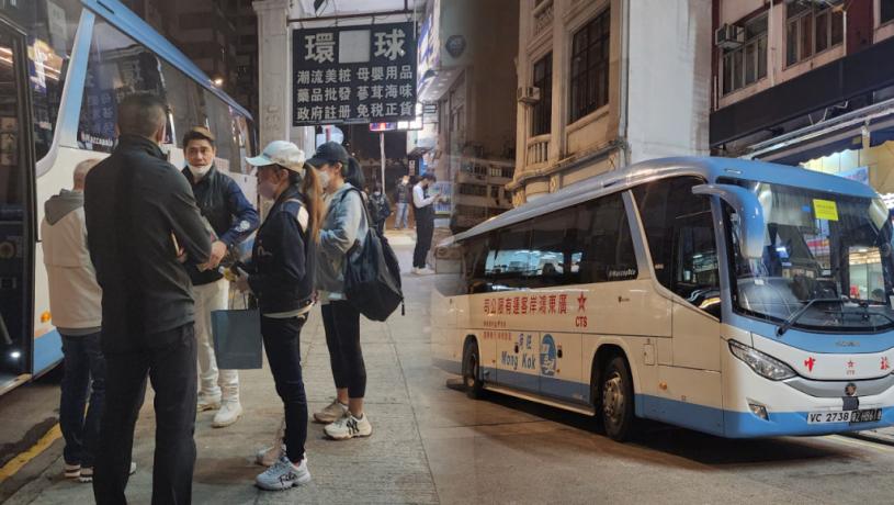 本港與內地今日(6日)起全面通關,24小時開放的皇崗口岸,亦迎來疫情後客運首次重開。記者昨日(5日)深夜於旺角視察,發現已有市民已急不及待,準備搭巴士過關。