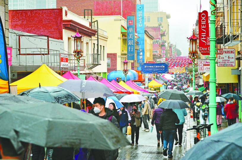 2月4日農曆立春,鞭炮聲此起彼伏,應節春雨如期而至,熙熙攘攘的遊客打著傘,來到中華總商會主辦的「社區元宵街會」,興致盎然。一連兩天的「社區元宵街會」位於Grant街從California街至Broadway路段,周日從早9時至下午5時。