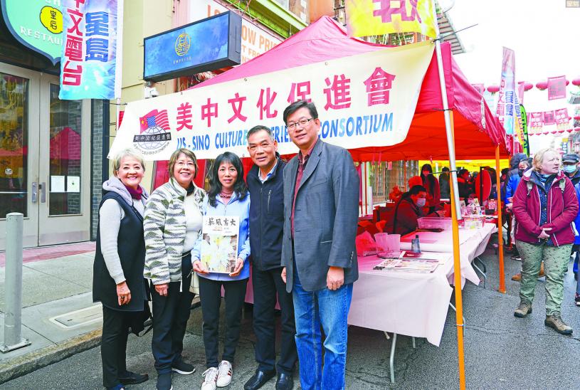 星島日報,星島電台和華埠訪客中心一如既往積極參與三藩市華埠農曆元宵街會,美中文化促進會會長陳萬祥慈善籌款即席揮毫。