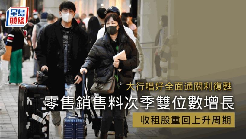 美銀報告則表示,預期香港零售銷售將於今年首季起顯著反彈,而當旅遊及人流逐步回復正常,次季的零售銷貨價值增長有望達到雙位數。